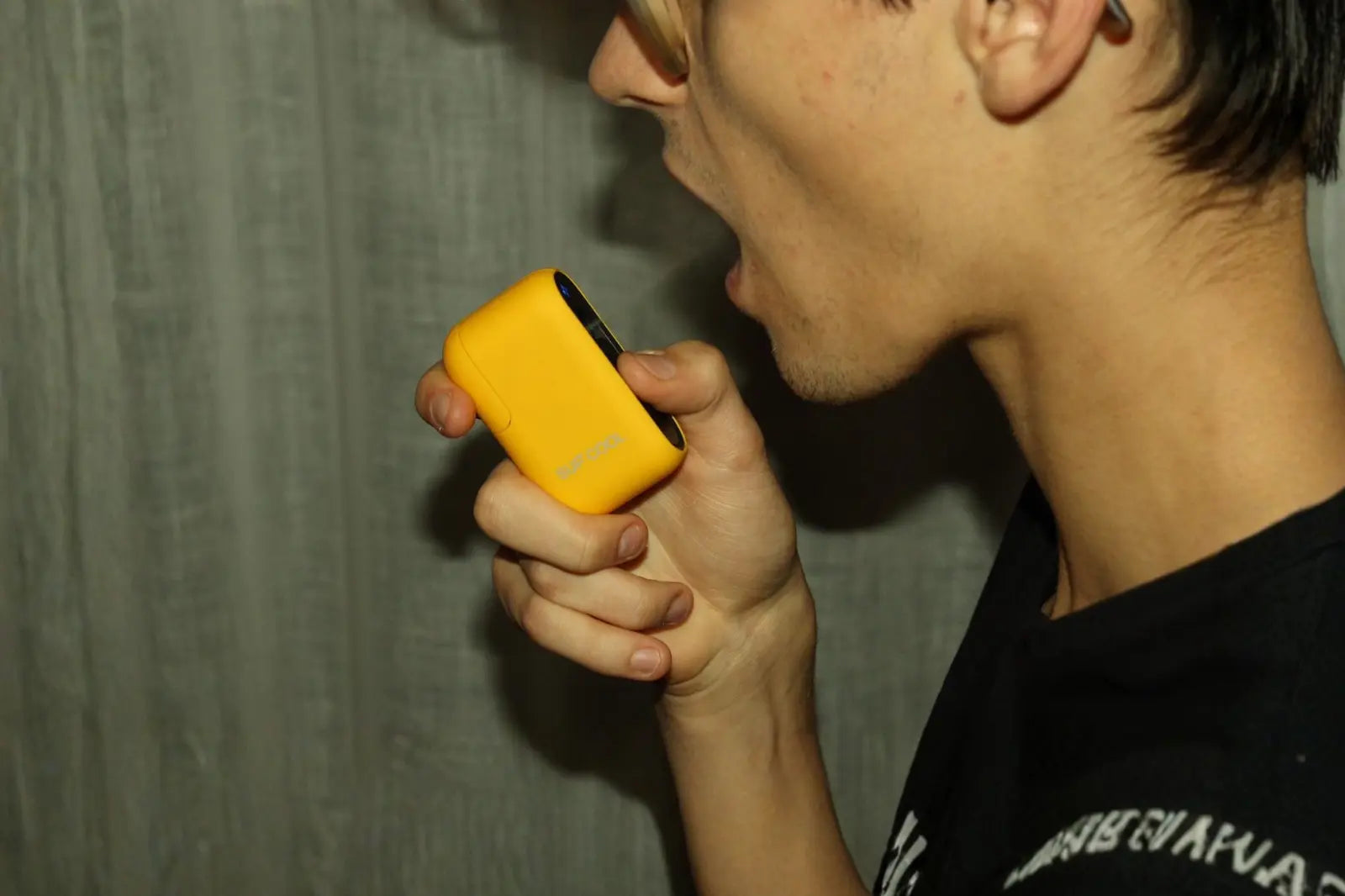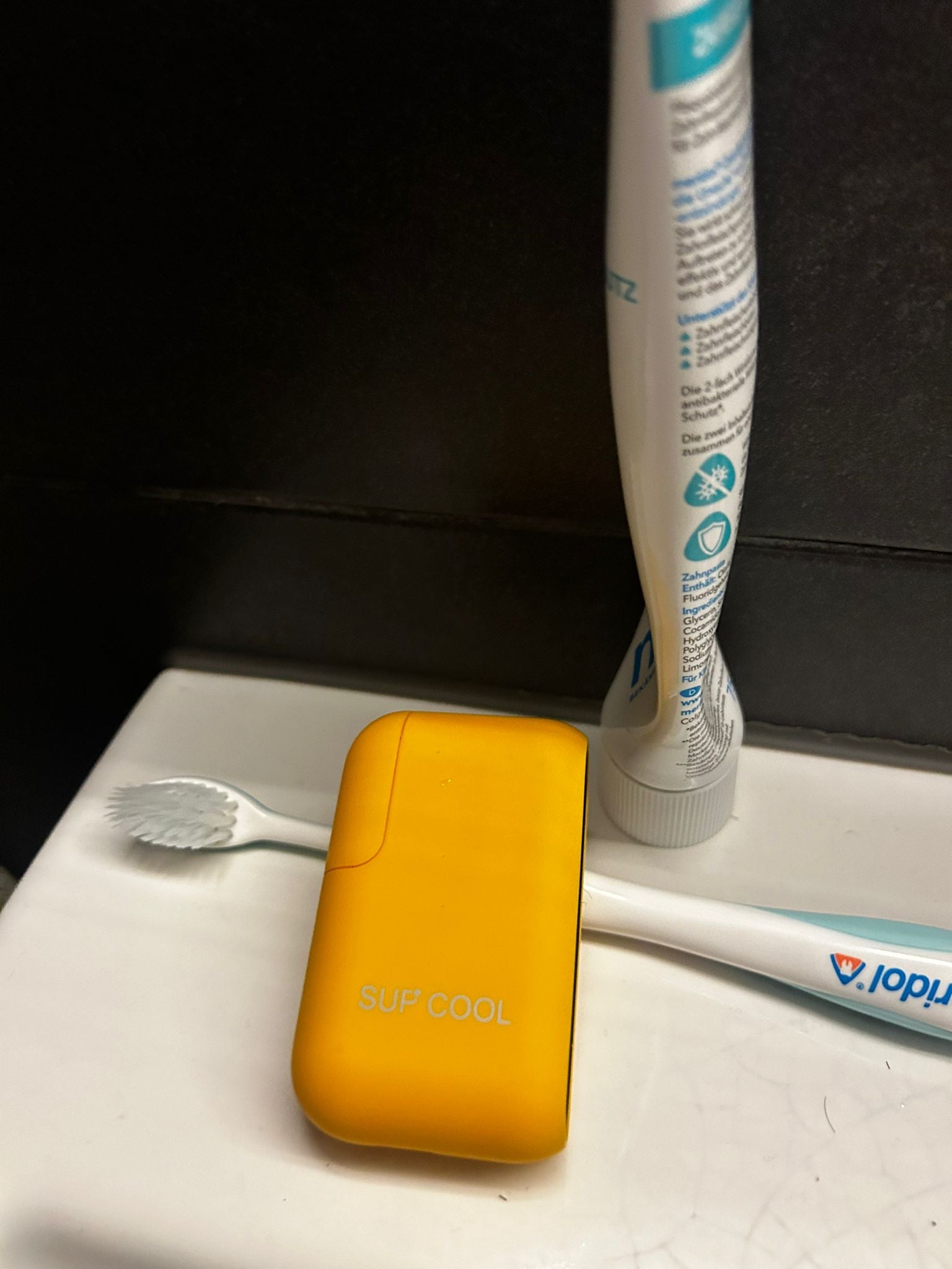 "Stylisch und praktisch. Die gelbe Farbe sieht cool aus und sorgt dafür, dass man es nie verlegt. Super easy zu benutzen, vor allem, wenn man mal schnell frischen Atem braucht."
